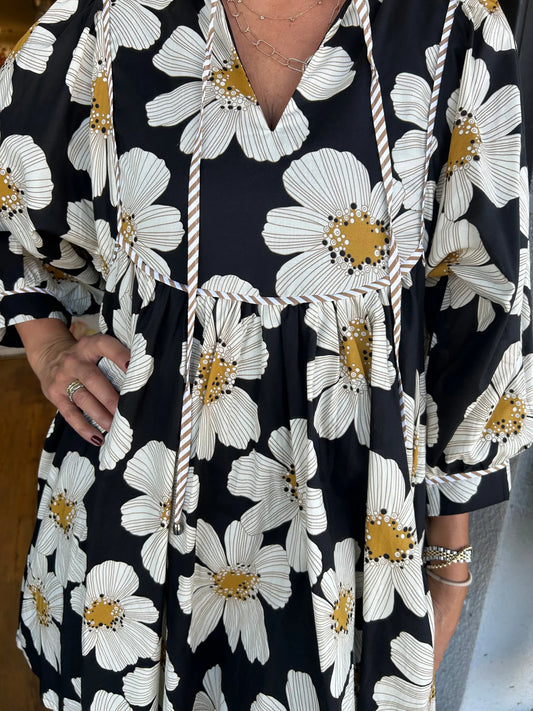 Women's V Neck Half Sleeve Floral Tunic Short Dress